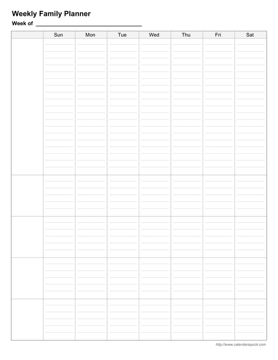 This family calendar contains no dates, so you can print off a batch and fill in when needed. Works great as a reusable master calendar when laminated and posted in a prominent spot.