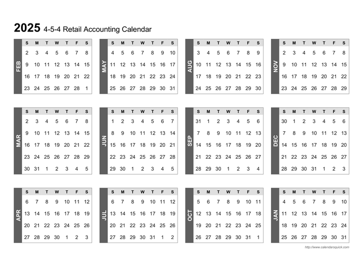 This template lets you download a printable 4-5-4 retail accounting calendar for 2025, 2026, or any other year. Calendars are PDF-formatted for high-quality printing.