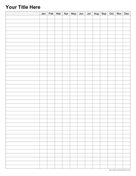 This template lets you create a printable 12-month grid for tracking expenses, sales figures, bill payments, or anything else on a monthly basis.
