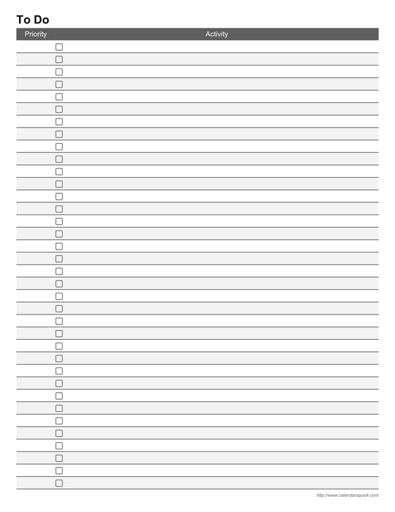 This form lets you customize and print a to do list in Letter, A4 or Classic paper size. Portrait and landscape options. You will need the free Adobe Acrobat Reader software to view and print this Adobe PDF document.