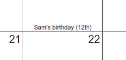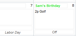 In My Schedule, there are now 3 sections for aligning text to the top, middle, and bottom of your calendar boxes. Your text appears in printed calendars just as you see it in My Schedule. Choose a color for each section to call out certain types of text, e.g. birthdays and anniversaries in green.