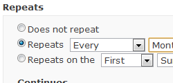 Include repeating events in your web calendar, Excel calendar files, and schedule-supported PDF calendar files. Simply click the "Create event" link from the My Schedule page. Learn more