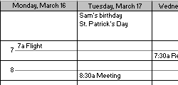 Create Weekly Planner files with your schedule, special occasions, and holidays already filled in. Your holidays and special occasions appear in the top box for each day. Appointments appear in the middle section, and tasks (un-timed items) show in the bottom rows. Available for the PDF Weekly Planner and Excel Weekly Planner.